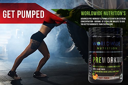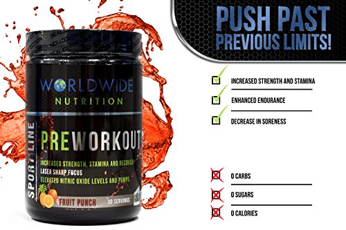 -. Feature : MAXIMUM QUALITY AND BENEFITS: Worldwide Nutrition's Sport Line Pre-Workout is a cutting-edge supplement designed to increase strength, stamina, endurance, and recovery throughout your workout. No matter the type of athlete you are, you will see an IMMEDIATE improvement in your intensity, drive, and focus while working out. / BETTER WORKOUTS THAN EVER BEFORE: Our advanced pre-workout is formulated with an extreme concentration - 6000mg- of Citrulline Malate, which is the ULTIMATE FATIGUE FIGHTER AND NITRIC OXIDE BOOSTER. Push past previous limits and break through your plateaus to achieve new limits and maximum gains. / TRIPLE THREAT: Designed with 0 carbs, 0 sugars, and 0 calories to maximize the results of the 3 essential workout matrices; Energy/Focus, Strength/Endurance, and Muscular Pumps. / BETA-ALANINE: Worldwide Nutrition's Sport Line Pre-Workout has an incomparable serving of Beta-Alanine- 3200mg - in regard to competitors. This extreme dosage increases muscle carnosine concentrations which leads to enhanced exercise capacity and the development of more LEAN MUSCLE MASS. / FORMULATED BY INDUSTRY EXPERTS with no additional junk, and only result-proven ingredients, while keeping the delicious, natural flavors of Fruit Punch and Blue Raspberry present.