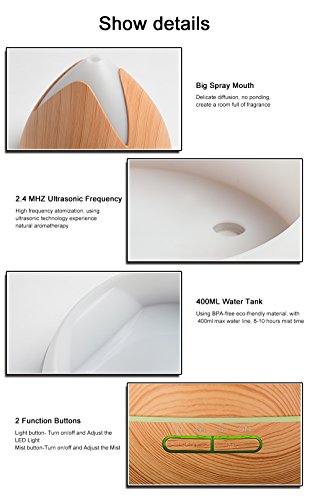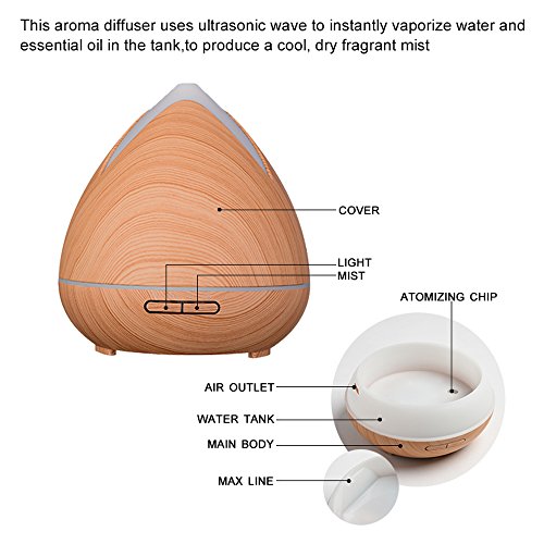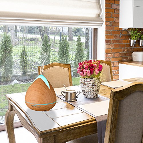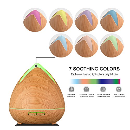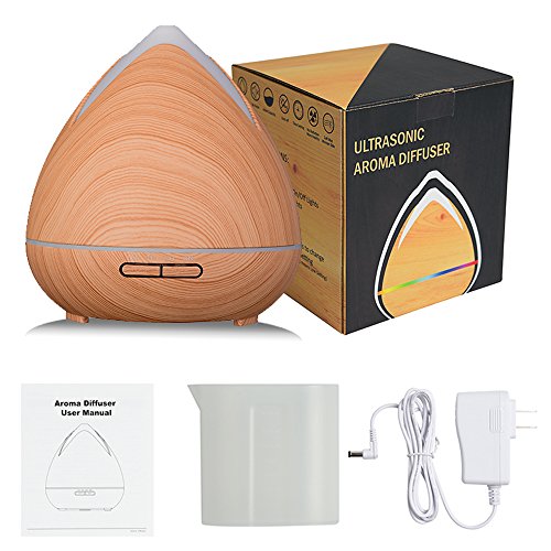 Essential Oil Diffuser, 2018 Newest Version, Ultrasonic 400ml Aroma Diffuser, Adjustable Mist Mode, Waterless Auto Shut-off, 7 Color Changing LED Lights. For Home, Office, Yoga -Light Wood Grain (pax)