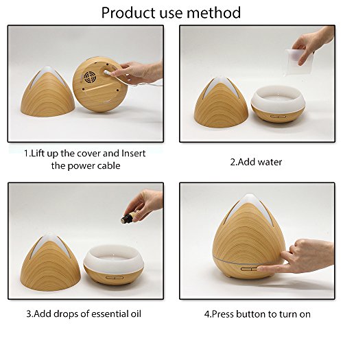 - UNIQUE AND EXCLUSIVE DESIGN - Decorative modern design, natural wood grain look. The cap of the aroma diffuser is easy to take off, no need great force to unscrew the cap when your hands wet. Just gently take off the cap, add water and essential oil, enjoy high-quality life.