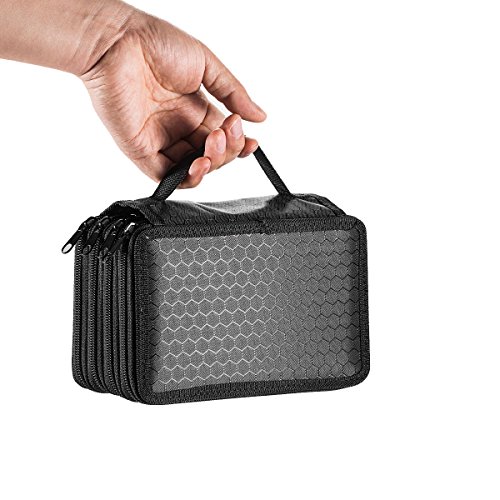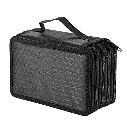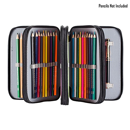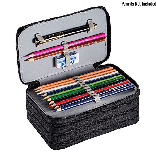 UTRO Large Capacity 72 Slots Multi-layer Zipper Pencil Case Pencil Holder Pencil Pouch Pencil Bag Pencil Wrap Stationary Box Coloring Pencils Organizer Storage with Handle (Black)