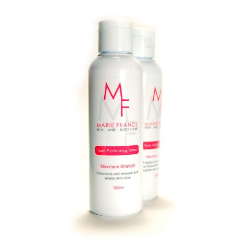 -. Binding : Misc. -. Brand : Marie France Skin and Body Care -. Feature : Derma-grade skin whitening toner that combines glycolic acid and kojic acid for superior skin whitening and exfoliation. / Weight: 100 ml (Enough to last for two weeks if applied daily. We recommend getting at least 3 bottles to last for a month.) / A daily facial toner that helps even whiten skin tone and fades away skin blemishes. Formulated with the purest form of kojic and glycolic acid, Marie France's skin toner can help achieve a fairer and supple-looking skin. This is a one-of-a-kind toner that combines the powerful ingredients kojic acid (a whitening ingredient) and glycolic acid (a skin exfoliator.) The glycoloc acid in this skin whitening toner works by removing the dead skin cells that causes clogged pores and dull skin. Glycolic acid is also effective in inhibiting acne or pimples and removing black and whiteheads. The kojic acid then penetrates the skin to make it lighter, more youthful and supple-looking. This skin whitening toner is also proven effective to remove acne or pimple scars, melasma, hyperpigmentation, freckles, black and whiteheads, facial scars and other facial blemishes. / Skin benefits per ingredients: Kojic acid is a well-known natural skin whitening ingredient that was discovered in Japan. Kojic acid is widely used worldwide due to its effectiveness when it comes to whitening the skin. The best characteristic of this whitening ingredient is that it gives you that natural-looking whiter skin and not the "fake white" kind of skin. Glycolic acid is a natural but powerful skin exfoliant (peel) that removes dead skin cells, evens skin toner, smooths fine lines, removes wrinkles and age spots. It gently exfoliates the skin to reveal and brighter and lighter skin tone. Glycolic acid shows a great skin improvement when used daily. / What to expect: Depending on your skin type, you may experience skin peeling for the first week or two. Your skin will look like it's dry but it's not. It may also feel a tight. This means that you skin is peeling or microexfoliating so do not be alarmed. Skin exfoliation or skin peeling is essential when it comes to skin whitening. This is because your dead skin cells must be removed first in order for the skin whitening agent (kojic acid) to penetrate your skin. Skin peeling also unclogs your pores and removes your black and whiteheads. The best way to avoid the skin looking "dry" is to use a heavy moisturizer, preferably Marie France Tone Perfecting Crème. Again, a moisturizer is a must when using this product because you may experience skin peeling for the first two weeks. -. Label : Marie France Skin and Body Care -. Manufacturer : Marie France Skin and Body Care -. ProductGroup : Beauty -. ProductTypeName : BEAUTY -. Publisher : Marie France Skin and Body Care -. Size : 100 ml -. Studio : Marie France Skin and Body Care -. Title : Marie France Tone Perfecting Toner - Professional-Strength Skin Whitening Toner