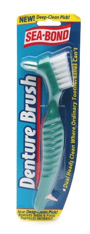 Studio : Combe Incorporated Publisher : Combe Incorporated Binding : Misc. Product Description Dual Brush Heads Clean Hard-to-Reach In-Between Areas Sturdy, All-Nylon Bristles Bigger Handle for Better Non-Slip Grip Durable Antibacterial Plastic Sea-Bond Dental Brush makes cleaning dentures, retainers and mouthguards easy. Inhibits bacteria growth on palstic. Deep clean pick removes seeds and food particles instantly. 0