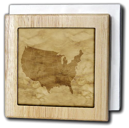 -. Title : 3dRose Florene Maps In Exotic Outline - Image of Antique Map Of USA On Beige Parchment - Tile Napkin Holders