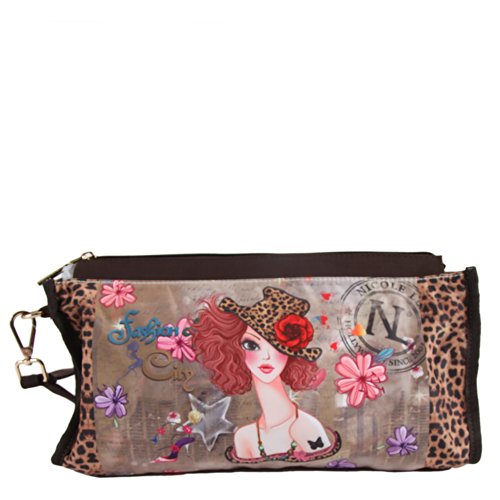 Keep everything easily accessible with this handy Nicole lee catriona personal travel bag. Key features: organizes your handbag, easily change in between bags or can be carried on its own and printed with the most popular Nicole lee's prints. Exterior features: made of nylon, Nicole lee print all around, gold tone hardware and zipper closure. Interior features: purse organizer: 17 slip pockets and polka dots print satin lining. Includes detachable 7 inch inch wristlet. Colors available are marina, dolly, sunny, Tina, new York, bicycle, doll house (peach), doll house (yellow), doll house (natural), doll house (blue). For cleaning, wipe with damp cloth.Feature