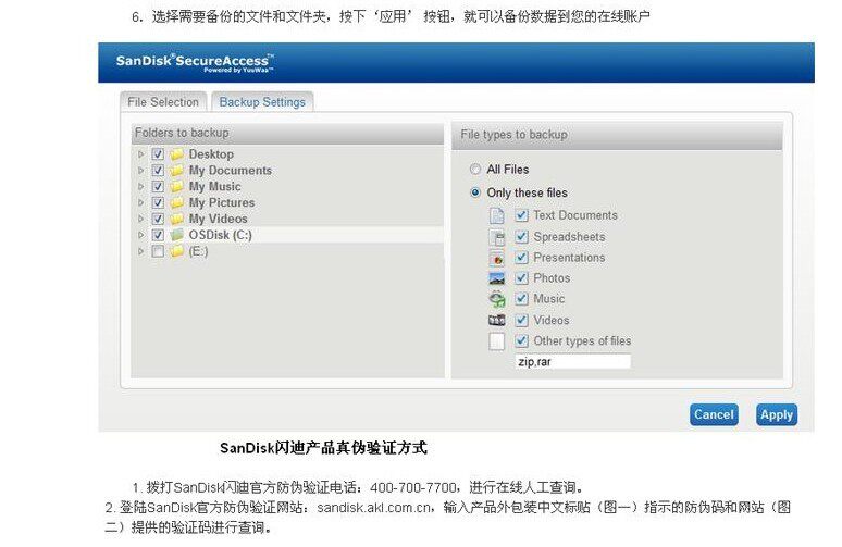 2、 附有SanDisk SecureAccess™软件和Yuuwaa™提供了数据保护和在线备份功能(起始 2GB 免费),以应对目前备受顾虑的数据私密性、敏感性数据丢失、电脑/笔记本丢失或被黑客入侵,以至硬盘损坏等各种问题。