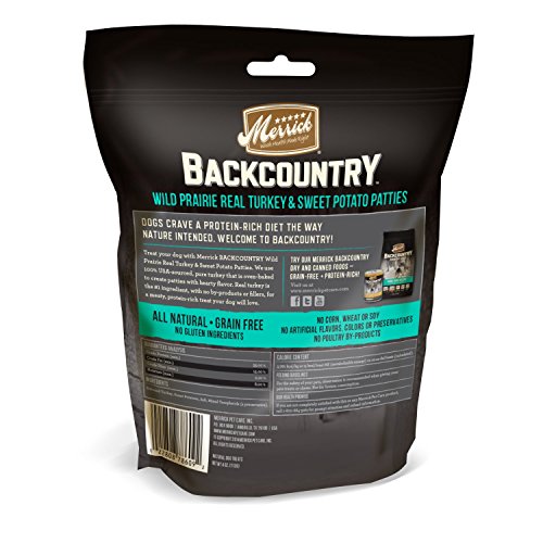 -. Binding : Misc. -. Brand : Merrick -. Label : Merrick Pet Care -. Manufacturer : Merrick Pet Care -. Model : 78607 -. MPN : 78607 -. PackageQuantity : 1 -. PartNumber : 78607 -. ProductGroup : Pet Products -. ProductTypeName : PET_SUPPLIES -. Publisher : Merrick Pet Care -. Studio : Merrick Pet Care -. Title : Merrick Backcountry Patties Dog Treats, 4 oz