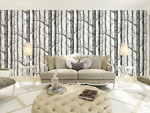 Modern Minimalist Birch Tree Pattern Waterproof Wallpaper Wall Paper Roll for Livingroom Bedroom, 20.8 In32.8 Ft=57 Sq.ft,black&cream-white