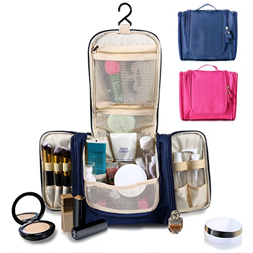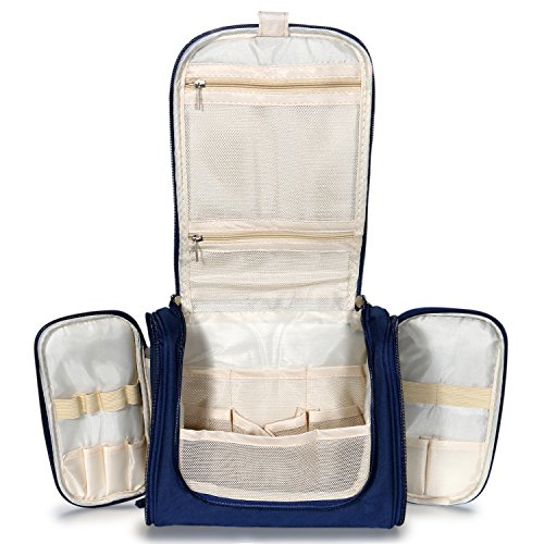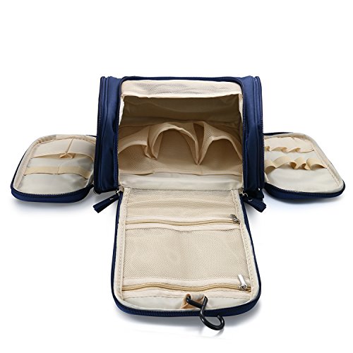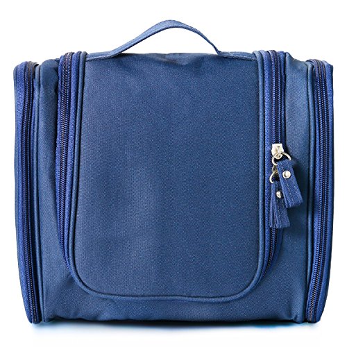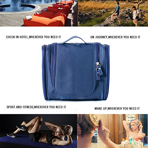 Portable Travel Kit Resistant Organizer Makeup Bag Bathroom Storage with Hanging for Business, Vacation, Household,Blue