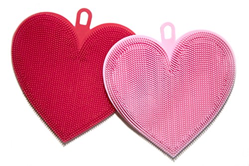Silicone Sponge Kitchen – Best for Cleaning Dishes, Washing Vegetables, Scrubbing Pots and Pans, Non-Scratch and Heat-Resistant, Eco-Friendly, Heart Shaped Great Gift Set of 2