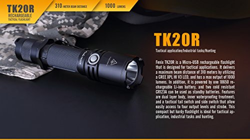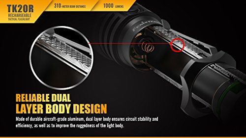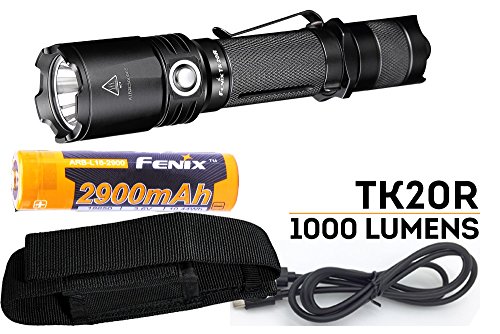 Fenix TK20R 1000 Lumen Rechargeable Cree LED Tactical Flashlight, 2900mAh 18650 battery, Holster and LegionArms USB Charging Cord