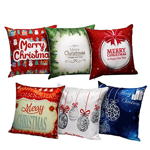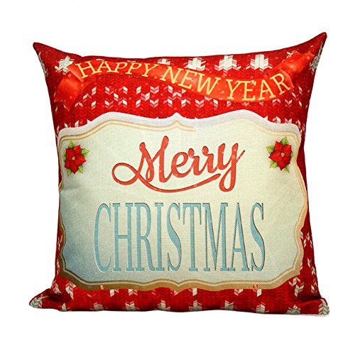 Aremazing White Linen Home Office Decorative Pillowcase Throw Pillow Cushion Cover 18 x 18 Inches Merry Christmas & Happy New Year (Style 6)