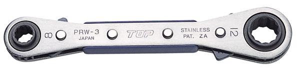 | 軽量化と握り易さを追及して、本体に強化プラスチックを使用しています。本体プレート部は強度と耐久性の高いステンレス製です。ギア数24で15度でラチェットが駆動します。ラチェット部は本締め出来る強度があります。1丁で4サイズ使えます。 |