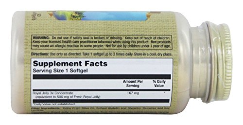 Suggested Use As a dietary supplement take 1 softgel up to 2 times daily. - Or as directed by your healthcare professional. Supplement FactsServing Size: 1Servings Per Container: 90Amount Per Serving% Daily Value***Royal Jelly 3.5x (equivalent to 500 mg)143 mg ***Percent Daily Values are based on a 2,000 calorie diet