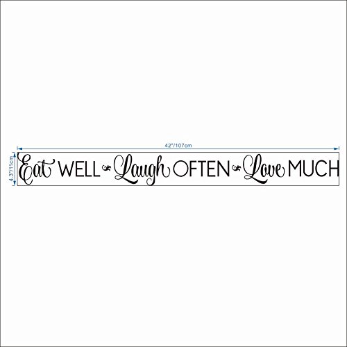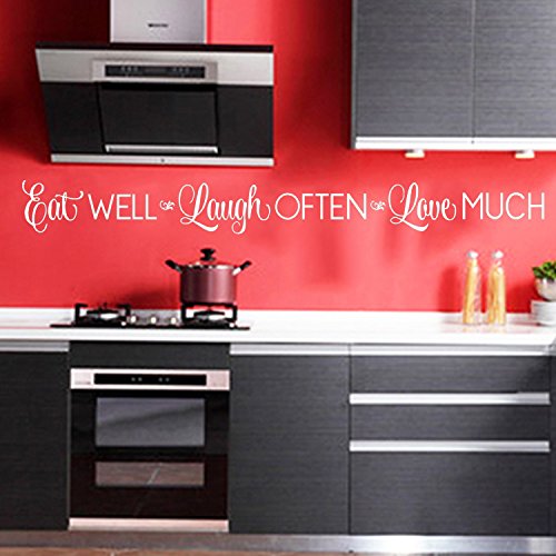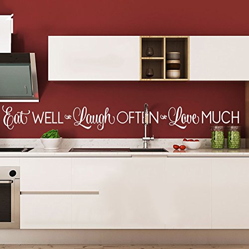 Kitchen Wall Stickers Home Decor, Dining & Cooking Quote Decal Heart Removable Vinyl Art Decoration (Eat Well, Laugh Often, Love Much, White)