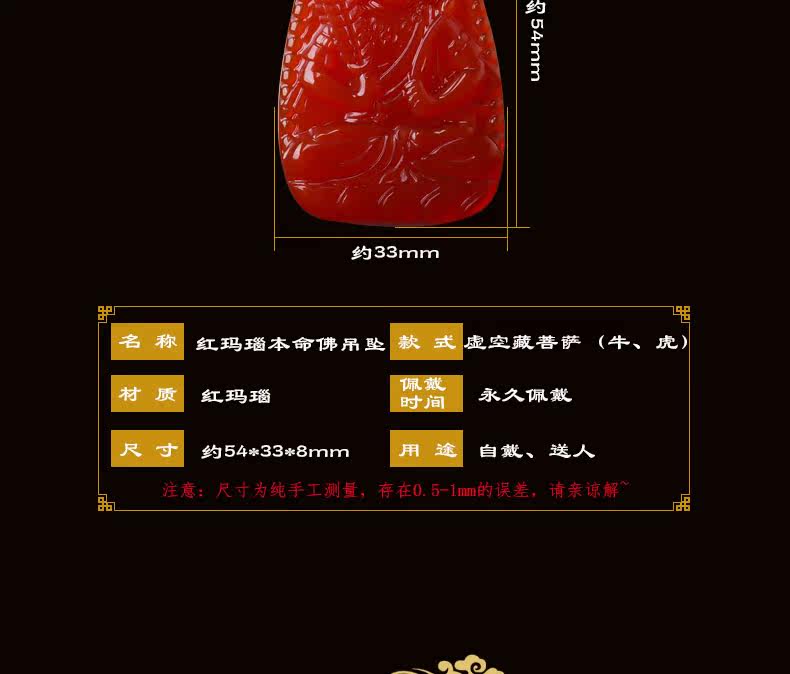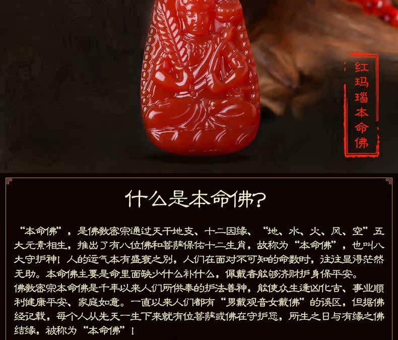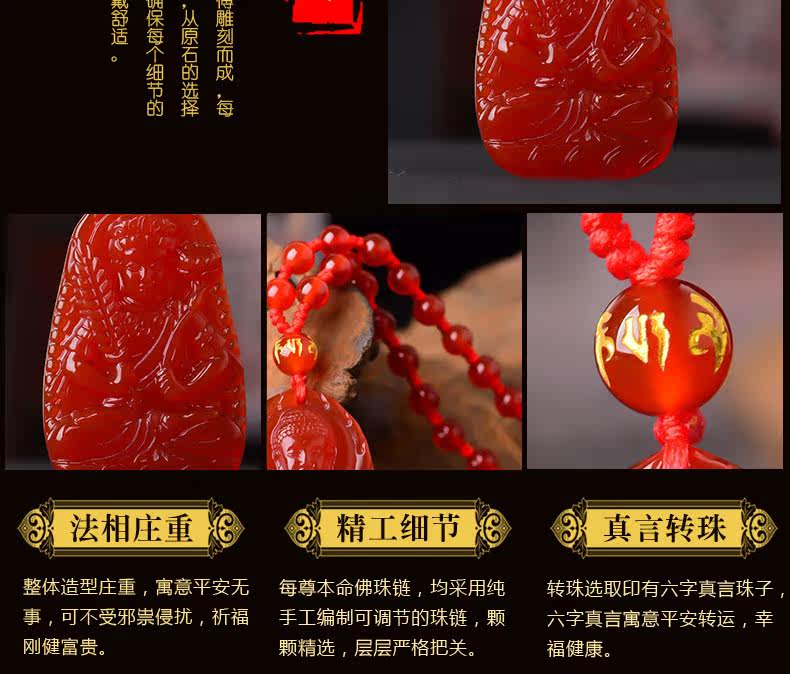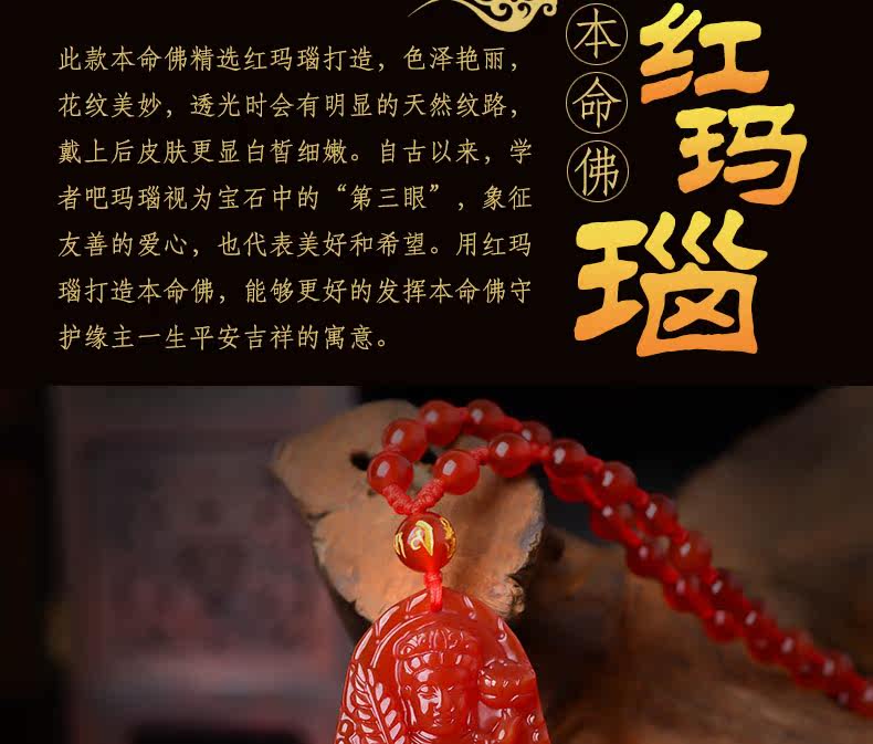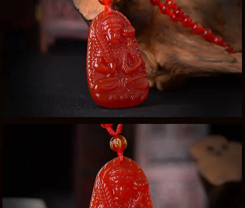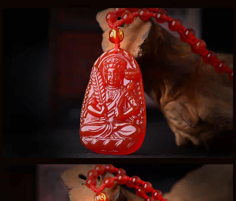 开光天然红玛瑙虚空藏菩萨吊坠 生肖属牛虎男女士本命佛项链挂件