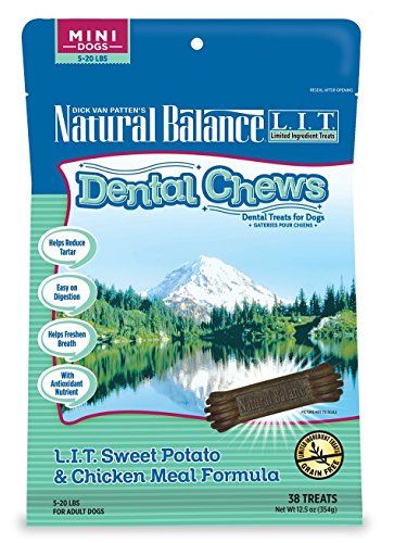 -. Title : Natural Balance Dental Chews Dog Treats, L.I.T. Limited Ingredient Treats Sweet Potato & Chicken Meal Formula, Grain Free, For Mini Dogs, 12.5-Ounce