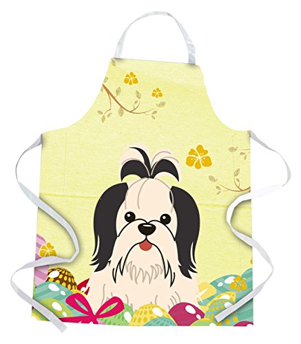Caroline's Treasures Easter Eggs Shih Tzu black White Apron, Large, Multicolor