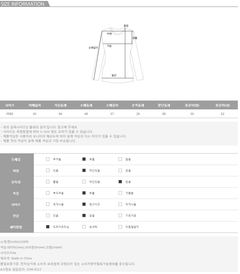 컬러는 네이비브라운크림 3color로 구성되어 있으며