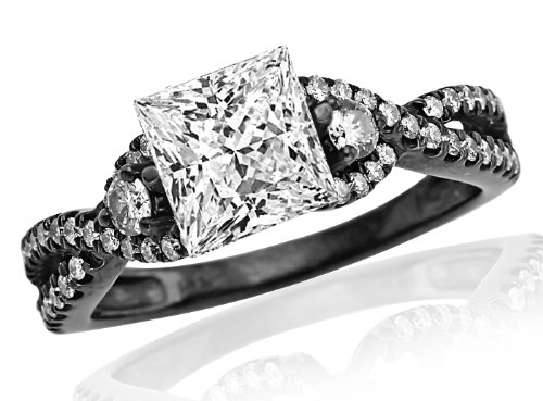 -. Title : 1.17 Carat Princess Cut Black Diamond Twisting Split Shank 3 Stone Diamond Engagement Ring (G-H Color, VS2-SI1 Clarity)