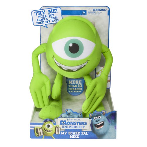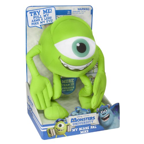 -. Feature : Pull, poke, squeeze and laugh! My Scare Pal Mike is an interactive friend that every Monsters University fan will enjoy! / Made from soft plush materials, My Scare Pal Mike is great for younger fans and is ideal for cuddling. / Pull on his limbs or poke him in the eye! Mike will spray out over 10+ hilarious lines straight from the movie! / My Scare Pal Mike is perfect for every Monsters University fan, but made for Ages 3+. / Includes: 1 My Scare Pal Mike, 1 Instruction Guide