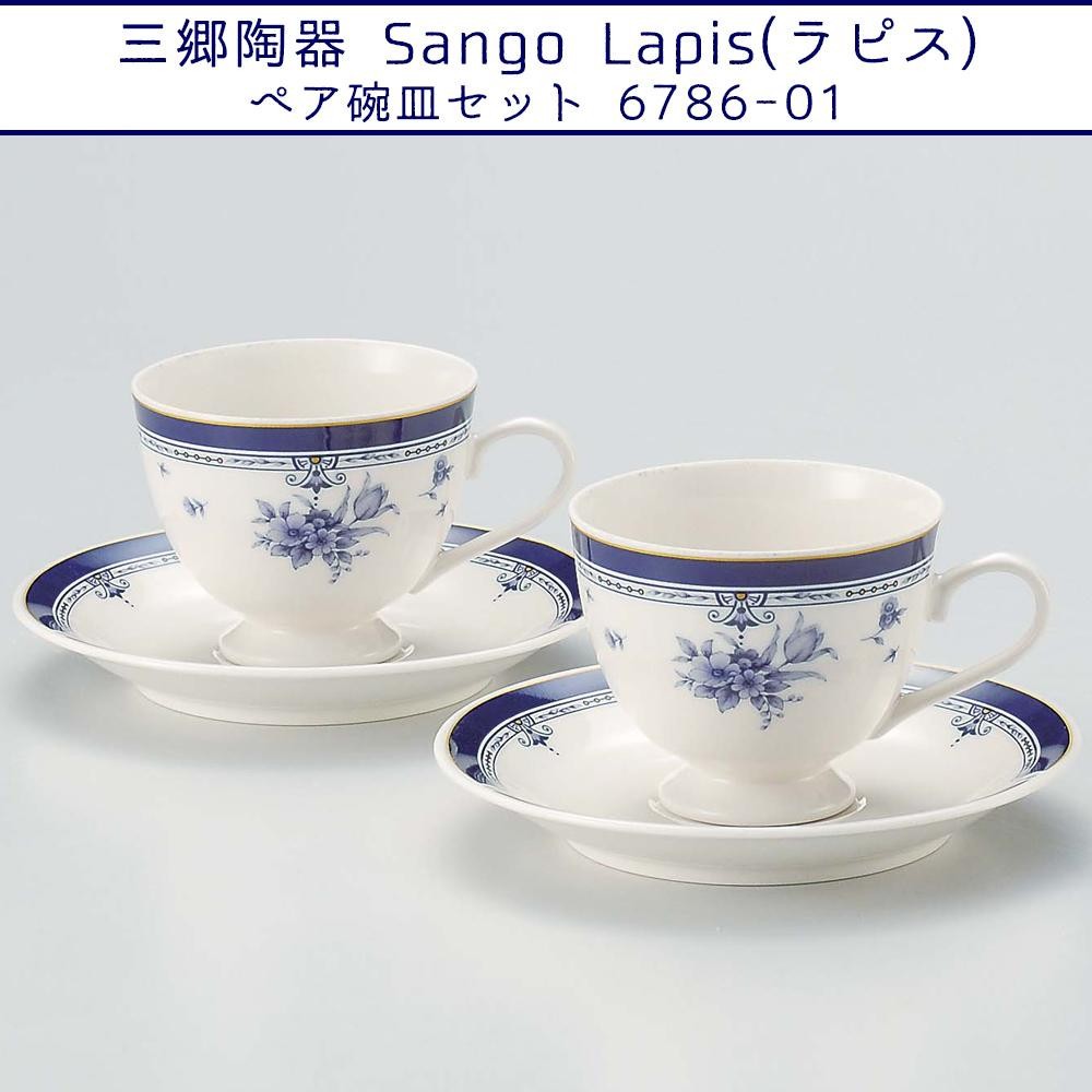瑠璃色の模様が美しいベーシックなシリーズのペア碗皿セットです。 製造国:中国 素材・材質:ニューボン 商品サイズ:カップ:Φ8.5×11.0×H7.0cm、ソーサー:Φ15.0×H2.0cm 仕様:容量(カップ):200ml電子レンジ使用可食洗機使用不可 セット内容:カップ&ソーサー×2 ※サプライヤー直送品 ご注文後3~4営業日後の出荷となります【商品名】三郷陶器 Sango Lapis(ラピス) ペア碗皿セット 6786-01