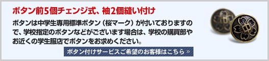 | ボタン | 前5個チェンジボタン式 袖4個(片袖2個計4個)縫い付け 最も一般的な仕様 | ||