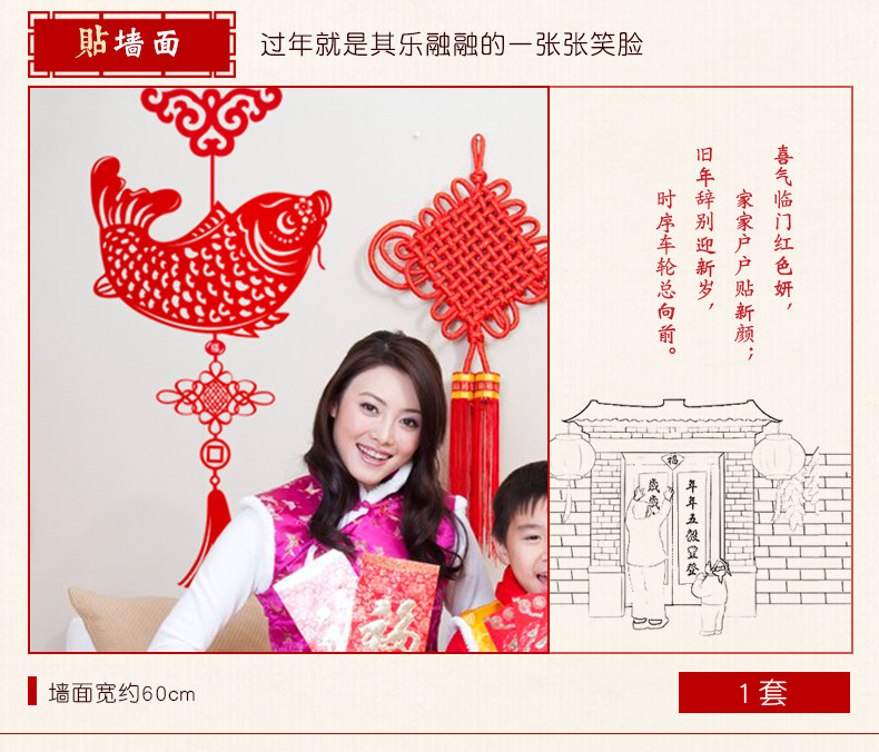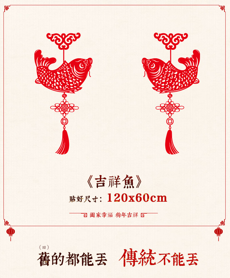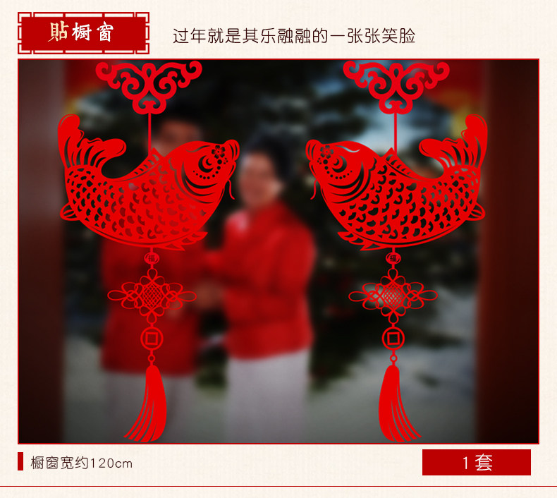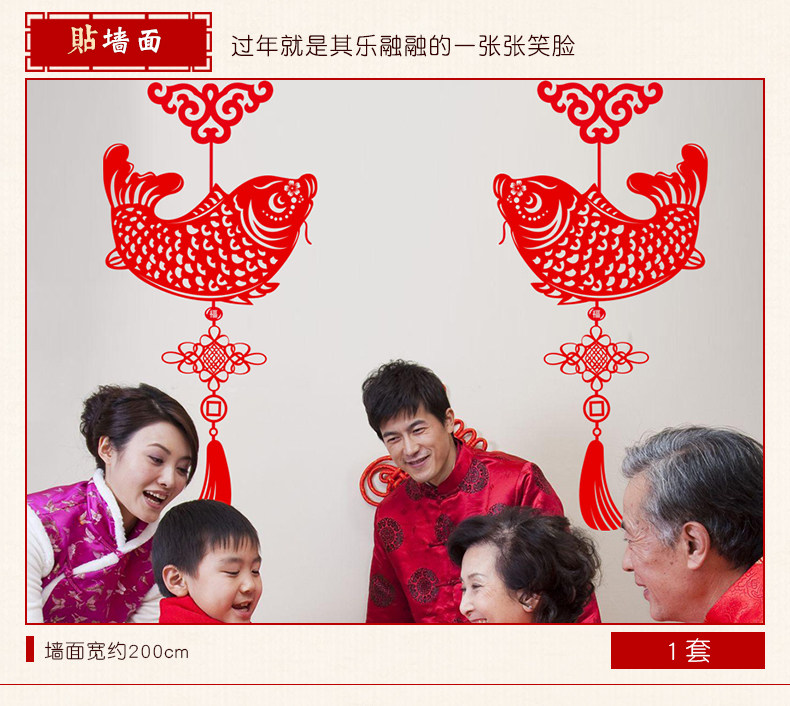 吉祥鱼窗户墙贴新年墙贴墙纸贴画墙壁贴纸可移除墙贴客厅一对喜气