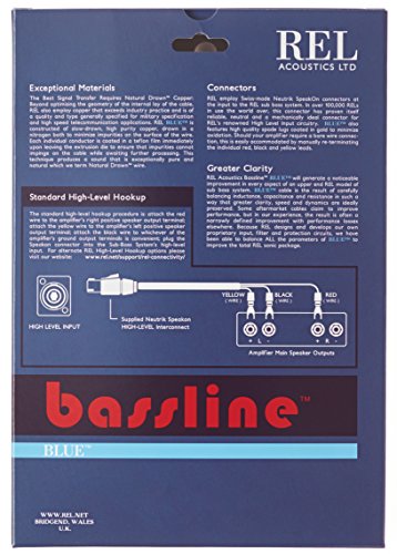 Studio : REL Acoustics Publisher : REL Acoustics Binding : Electronics Product Description REL Acoustics Bassline BLUE subwoofer cable will generate a noticeable improvement in every REL sub bass system. BLUE cable is the result of carefully balancing inductance, capacitance and resistance in such a way that greater clarity, speed and dynamics are ideally preserved. Some aftermarket cables claim to improve performance, but in our experience, the result is often a narrowly defined improvement with performance losses elsewhere. Because REL designs and develops our own proprietary input, filter and protection circuits, we have been able to balance ALL the parameters of BLUE to improve the total REL sonic package. 0