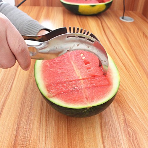 SAFE- EASY CLEANING: Protect yourself from cuts and injuries. Stop using knives and other sharp kitchen tools in order to cut your watermelon. Leave the messy juice behind, and get the most out of your watermelon. Easy to clean and dishwasher safe.