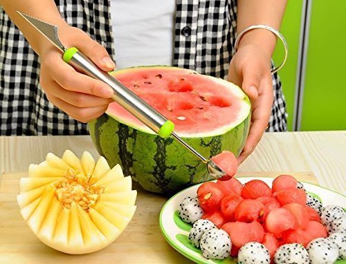 MMTE Watermelon Slicer + Melon Baller Full Stainless Steel Professional Watermelon Slicer Corer (2, Silver)
