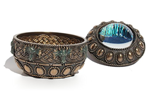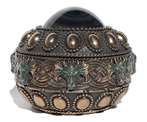 3.88 Inch Dragon Heads Eye Decorative Trinket Box, Bronze Color