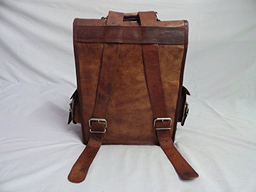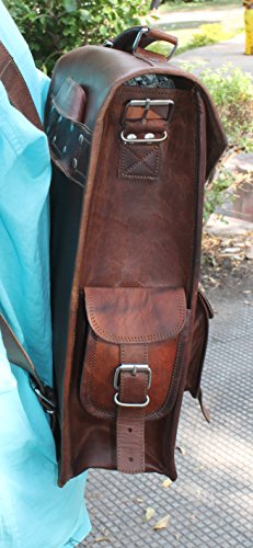 -. Feature : Outside Measurements (In inches): 11 (Length) x 15 (Height) x 5 (Deep) · / Inside Measurements (In inches): 11 (Length) x 15 (Height) x 4.5 (Deep) · / Weight: 1.0 kgs/ 2.5 Lbs (approx) · / Front: 2 small pockets and 1 zipper pocket · Side: 2 small pockets · Inside: 1 zipper pocket, 3 padded compartments · 1.5" wide and 70" long adjustable leather shoulder strap with hand carry / Material Used'- · Genuine Goat Leather Processed, no bad smell · Naturally tanned with sunflower oil only, no use of dye or chemicals · Genuine Nickle Polished Solid Steel Accessories · Inside is lined with sturdy but soft canvas