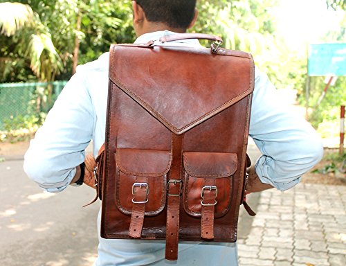 -. Title : SKH Vintage Leather Macbook Briefcase 2-in-1 Leather School Bag Backpack Rucksack