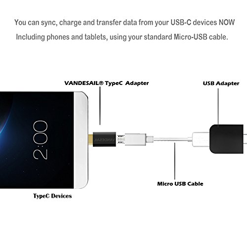 ★WITH A VANDESAIL USB TYPE C TO MICRO USB ADAPTER-you can sync, charge and transfer data from your USB-C devices; including phones and tablets, using your standard Micro-USB cable. This enables you to connect flash drives (non-otg), chargers, keyboards and other USB devices to your type C device.