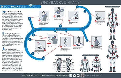 How many times daily do you suffer from some sort of strain related pain? What do you do when you need to massage or to soothe your tired muscles but you can't reach that problem area, or simply can't generate enough pressure for effective relief. The only thing left to do is pester a loved one or start getting creative with furniture in ways you never knew existed. Worry no more our Body Back Buddy is the answer. Designed to aid anyone whether suffering from chronic pain or those just looking for stress relief. Our tool boasts 11 perfectly placed therapy knobs that offer you an ease access to your whole body. Recommended by health fitness experts it is an effective tool for pain management techniques like Myofascial Release Deep Tissue Massage you can now dissolve pain, relax tension rid stress like never before. The Body Back Buddy is one of the oldest trigger point self-massage tools on the market. For more than a decade we have been working with professionals therapists from all walks of life to bring you the perfect tool. Its design reflects innovations once unique to our line of Body Back Buddys, but now heavily copied by the competitors. We have set ourselves apart by offering you a product 100% sourced, designed manufactured in the US. Made from a high quality, high density plastic, each tool is made in small batches allowing for greater quality control a product we can guarantee for life! Additionally, our specially engineered hooks are reinforced with an I-Beam like design that makes for a tool at least 3x stronger, more rigid easier to hold than similar cylinder designs. Each tool weighs 1.25 lbs comes with a 16-page instruction manual 11x17 inch usage poster. So light convenient you no longer need costly visits to the masseur. This amazing tool is the all-in-one solution to your pain management self-massage care. Make our Buddy, your best friend today. 0 |