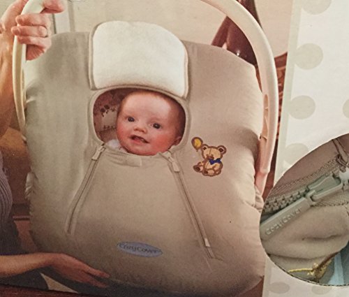 -. Feature : Weatherproof micro fiber shell lined with soft cozy fleece / Safe, backless design and does not interfere iwth child safety straps / Elasticized edge allows for easy useon infanct carrier / Neutral Beige Color with embroidered bear / Machine washable & tumble dry