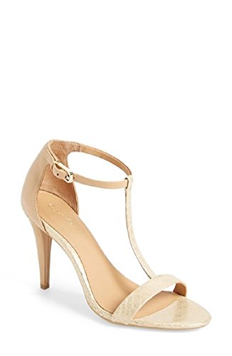 Womens Calvin Klein Nasi Leather T-Strap Sandal, Size 10 M - Metallic