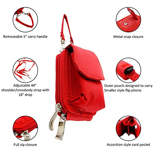 Nylon Flip Phone Case, Shoulder/Crossbody Strap, Belt Clip, Zipper Wallet #K9570.