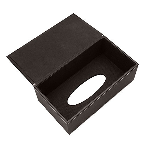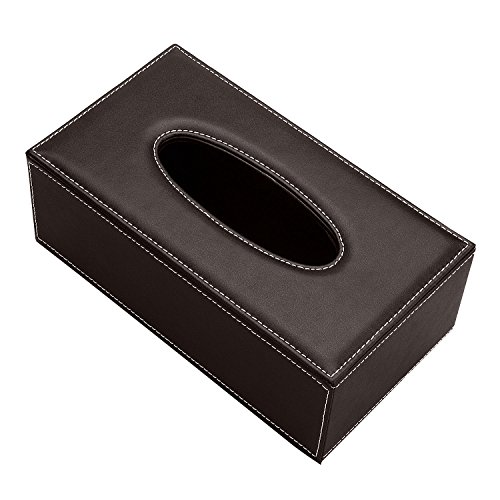 Smonet Luxury PU Leather Rectangular Tissue Napkin Paper Box Holder Tray Pumping for Home Office Car Automotive Decoration Tissue Cover Box Dispenser Case Holder (Sleek Dark Brown, Pack of 1)