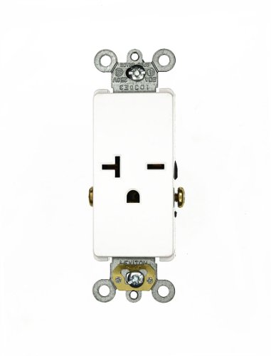 Leviton 16441-W 20 Amp, 250 Volt, Decora Plus Single Receptacle, Straight Blade, Commercial Grade, Self-Grounding, White