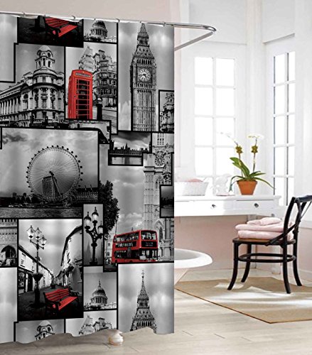 Elegant Comfort Luxury Premium Quality 3D Graphic Printed Bathroom Shower Curtain - 100% Vinyl WATERPROOF - London Landmark Design