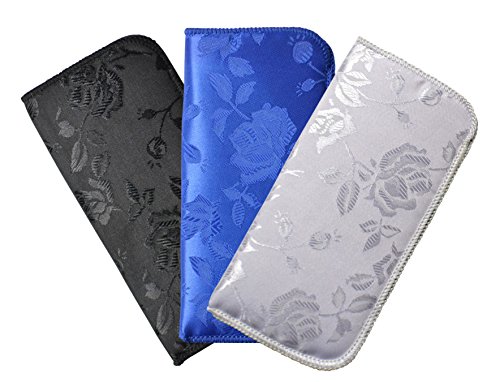 3 Pack Soft Slip In Eyeglass Case For Women- Floral Brocade, Assorted Colors
