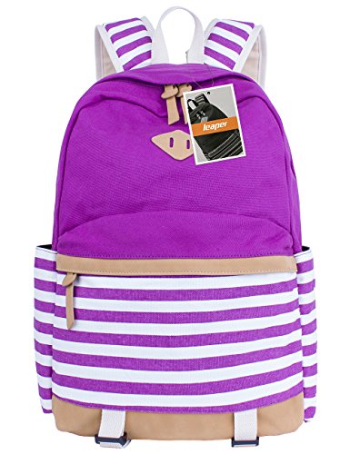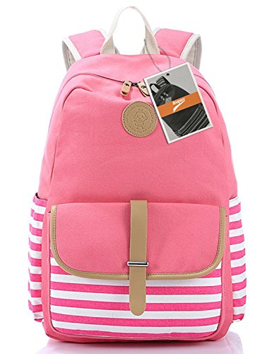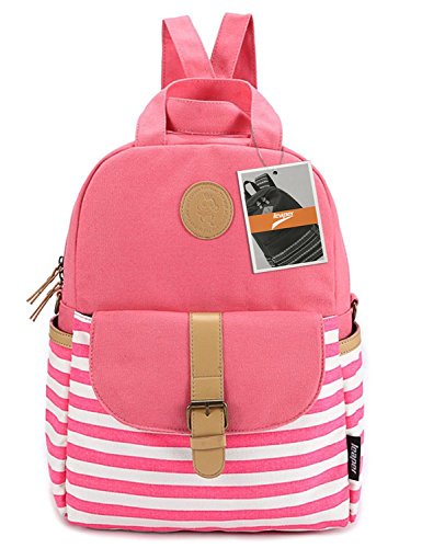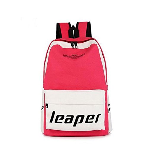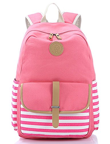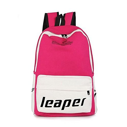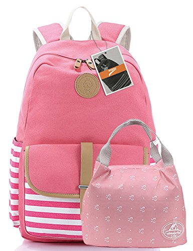 Leaper Thickened Canvas Laptop Bag Shoulder Daypack School Backpack and Cute Lunch Bag (2PCS, Pink1)