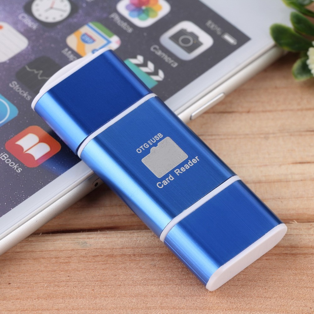 OTG TF Reader is suitable for mobile devices that support OTG interface. Once the TF card is inserted into this reader, it has two interfaces Micro USB & standard USB2.0 simultaneously. The files, photos and multimedia files on smartphones/tablets running Android systems can be stored onto the reader through the Micro USB interface and the multimedia files previously saved on the reader can be browsed directly. The other end is a standard USB2.0 flash drive that can be connected onto the computer by itself for use to easily save the files into the computer or play them on the computer.