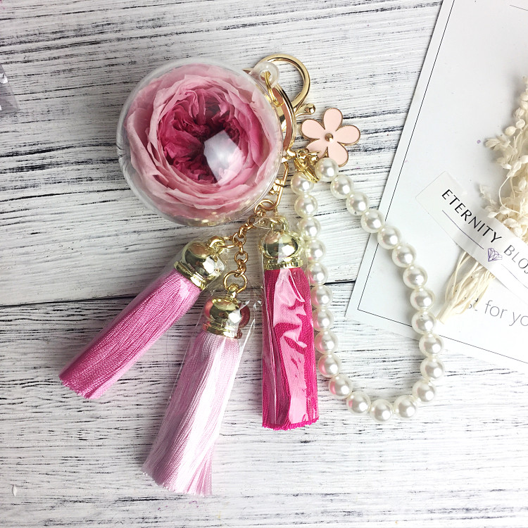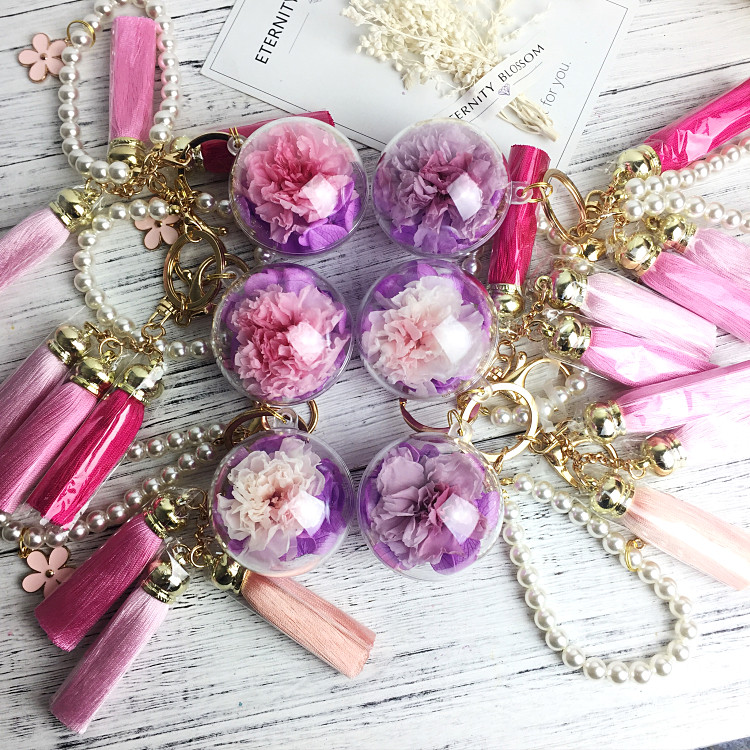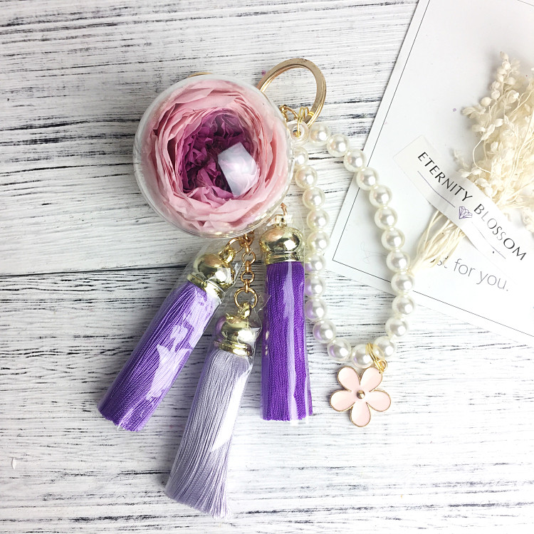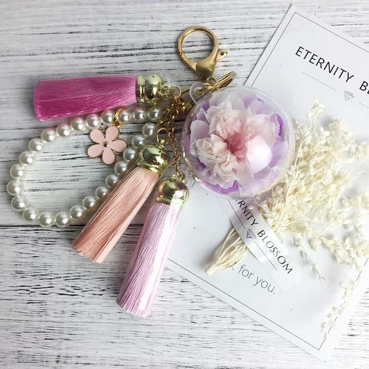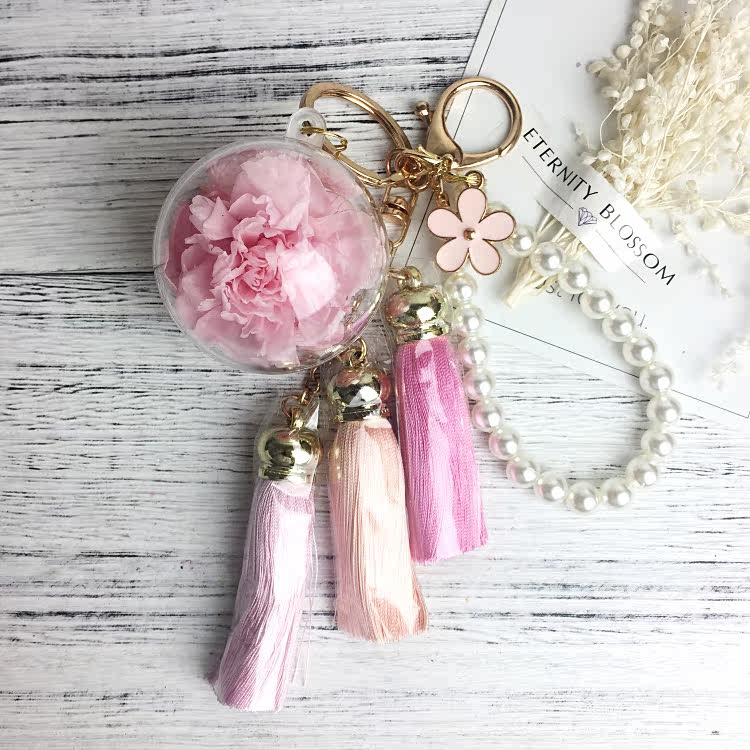 Real Flower(Preserved) Fringe Bag Charm Keychain Colour: 1 - 9 Flower Charm: 5cm *Kindly allow 1 - 2cm difference due to manual measurement.*