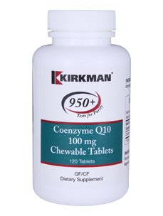 Coenzyme Q10 100 mg 120 chew tabs Dietary Supplement GF/CF Supplement Facts Serving Size: 1 Tablet Servings per Container: 120 Amount per Serving Coenzyme Q10 100 mg INGREDIENTS: Sorbitol CoQ10 Natural Raspberry Flavoring Silicon Dioxide Stearic Acid (Vegetable) Citric Acid Magnesium Stearate (Vegetable) Stevia Leaf Extract. SUGGESTED USE: 1 tablet three times daily or as directed by a physician. FREE OF: Sugar starch soy wheat casein gluten preservatives yeast egg milk gelatin artificial flavorings colorings fish peanuts or tree nuts. IMPORTANT: KEEP OUT OF THE REACH OF CHILDREN. STORE IN A COOL DRY PLACE AND TIGHTLY CAPPED. CoQ10 CAN VARY IN COLOR AND TEXTURE. TABLETS MAY VARY IN APPEARANCE FROM LOT TO LOT. All purchases subject to MAP policy compliance