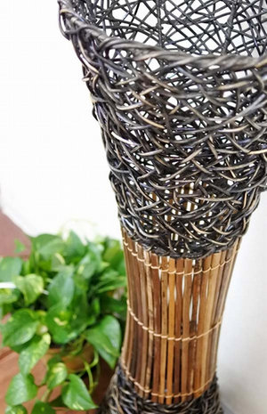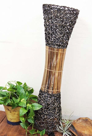 仕様【サイズ】全体サイズ:直径30cm×高さ100cm【素材】材質:ラタン・バンブー・アイアン//電球(40W)・電気器具(中間スイッチ付き日本製LED対応)/※当店のランプ類は全てLED電球対応ソケットですのでご安心下さい。コメントラタンとバンブーのくびれランプ★編み込まれたラタンとバンブーのコンビネーションは相性抜群!!隙間からこぼれる光りは天井や壁、お部屋全体を幻想的に演出します♪これひとつでおしゃれ上級者!!上部に花台も付いております。