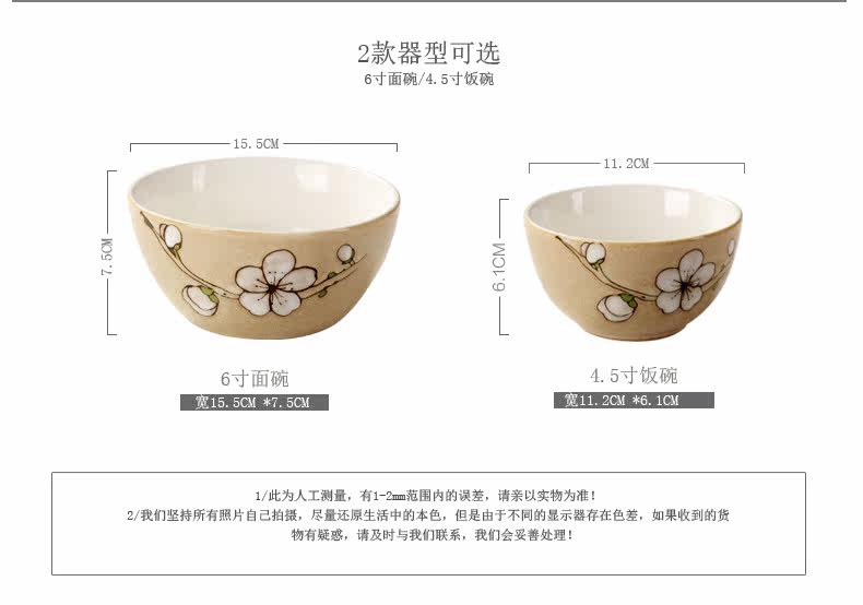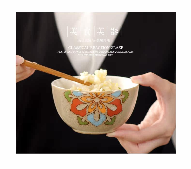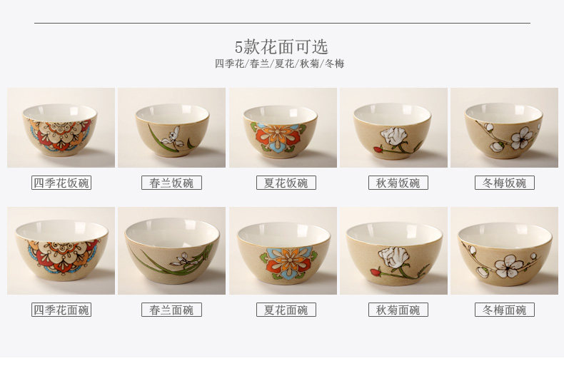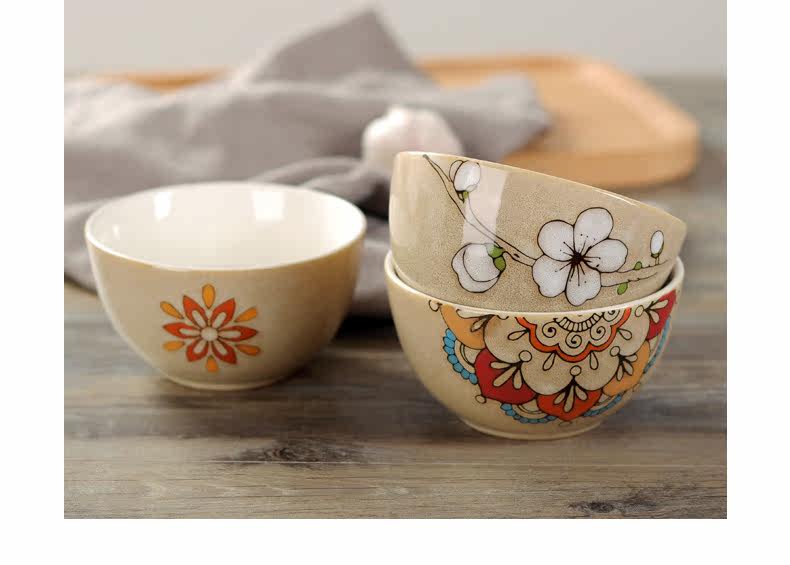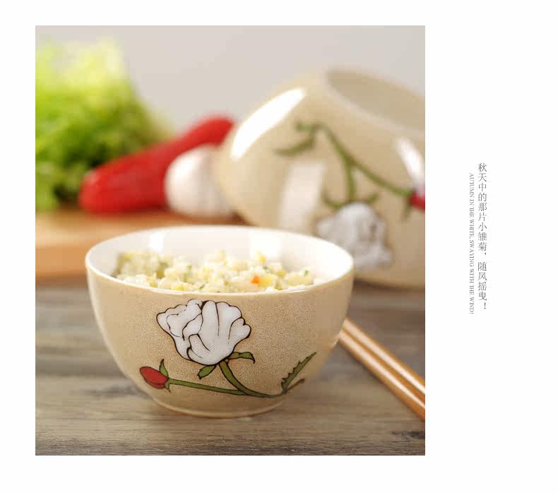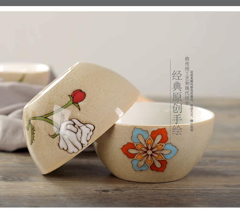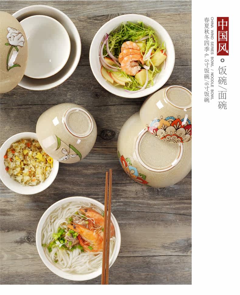 创意手绘中国风米饭碗小陶瓷碗 家用吃饭碗面碗小汤碗