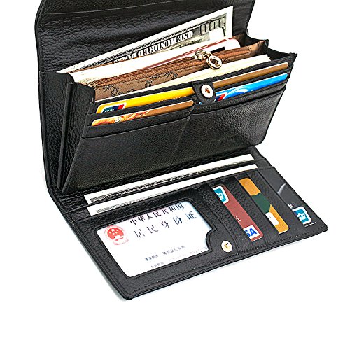 -. Feature : 100% Genuine Leather Wallet. Top quality cow leather of patent leather craft makes the purse more comfortable and luxury. / Dimensions: 7.48" x 3.94" x 1.18" inch / Organizer Building - Functional with 18 card slots(including a photo slot),3 bill compartments, 2 cash pockets,1 zipper pocket / Great As Gift - Nice present to friends, family on birthday, festivals / Large capacity for money, cards, coin and mobile phone