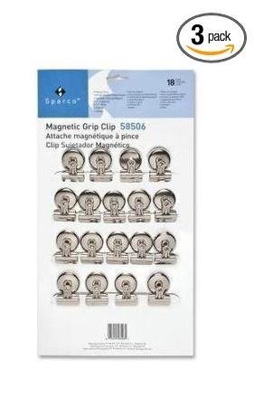 Sparco Bulldog Clip, Magnetic Back, Size 1, 1-1/4 X 3/8 Inches Cap, 18/Box, Silver (SPR58506) 3-PACK